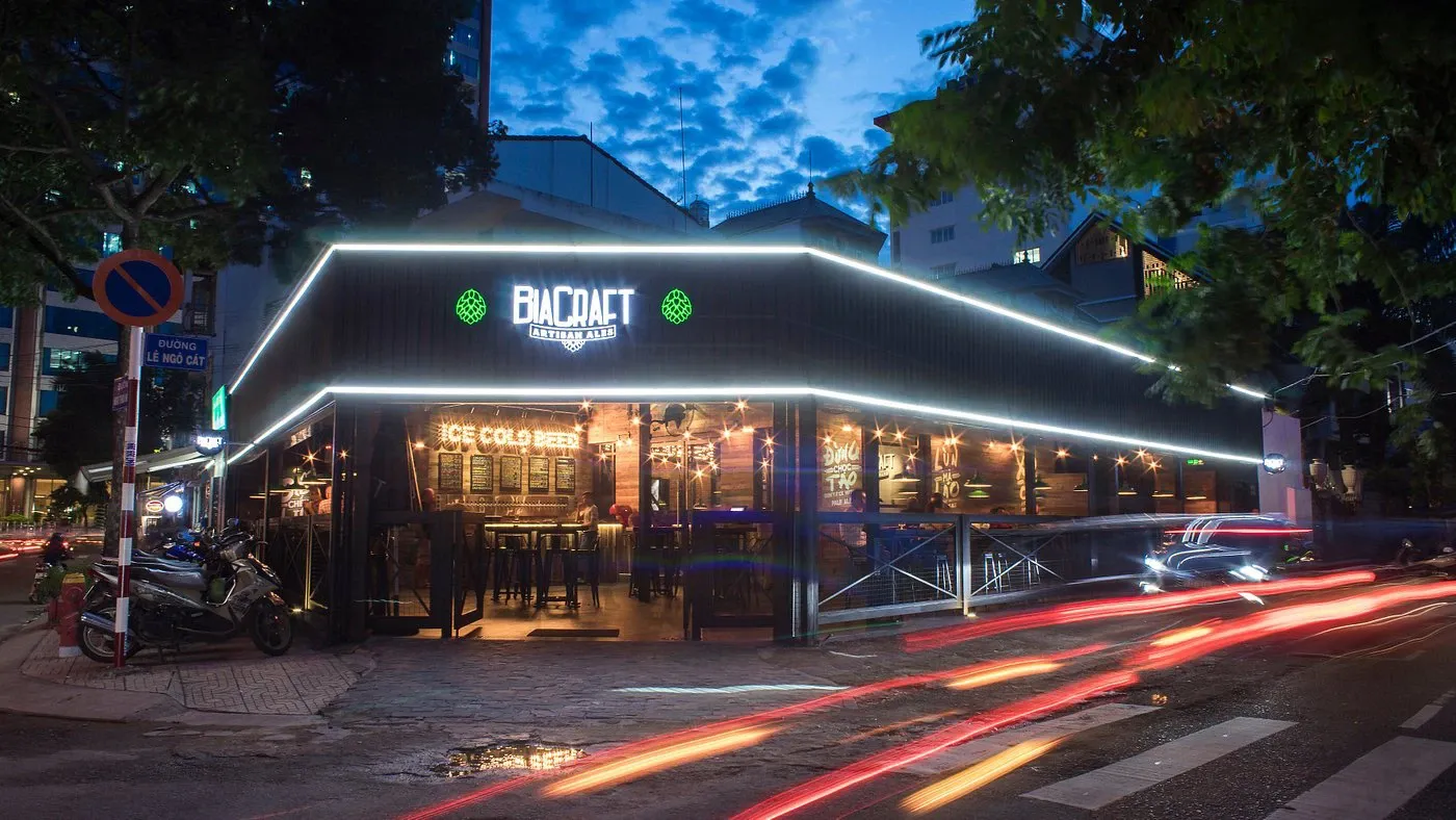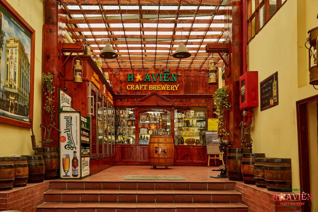 Opened in 1995, Hoa Vien Craft Brewery was the first microbrewery in Vietnam to introduce authentic Czech-style beer, brewed fresh on site. Step inside and you’ll find a warm, wood-paneled beer hall atmosphere, complete with hearty food and tall mugs of crisp pilsner. Nearly three decades later, it remains a beloved place where beer lovers gather to enjoy tradition by the pint.