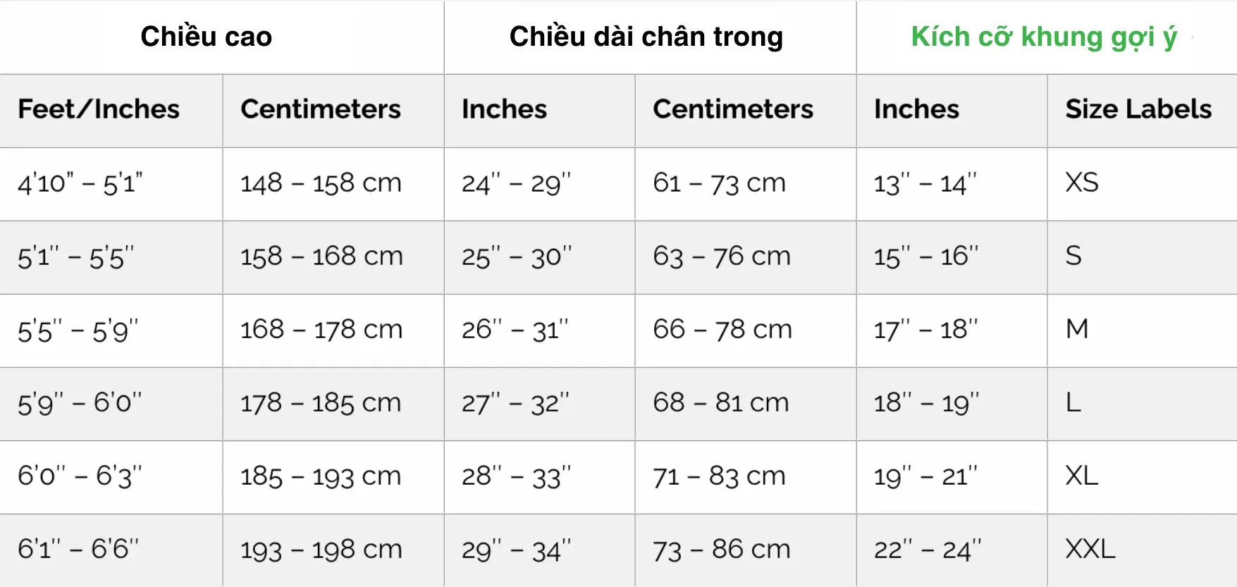 Để tìm ra kích thước khung xe phù hợp, bạn hãy thực hiện theo các bước sau: